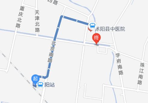 上車站火車站起沭陽站 步行 255米 至 火車站(約4分鐘) 沭陽108路(華安橡膠公司方向) 火車站 上車 歐中廣場 下車 首:06:15 末:18:00 約15分鐘/趟6站 步行 662米 至 終點(diǎn)(約10分鐘) 終江蘇省沭陽眼科醫(yī)院