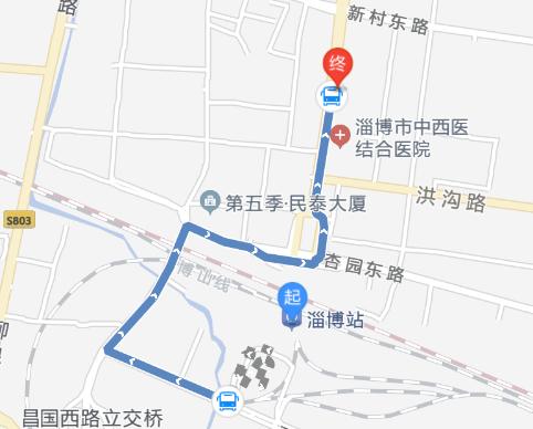上車站淄博火車站南廣場起淄博站 步行 925米 至 淄博火車站南廣場(約14分鐘) 126路/K126路(好妯娌工業(yè)園方向) 淄博火車站南廣場 上車 市中西醫(yī)院 下車 首:06:00 末:18:40 3站 步行 37米 至 終點(約1分鐘) 終淄博康明愛爾眼科醫(yī)院