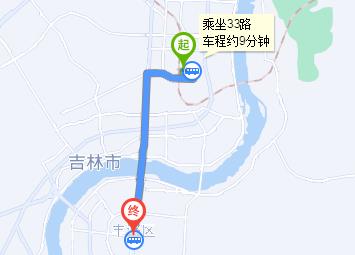 吉林站 步行 240米 吉林站東廣場站 上車 33路 9站 豐滿區(qū)政府站 下車 步行 70米 吉林市愛爾眼科醫(yī)院